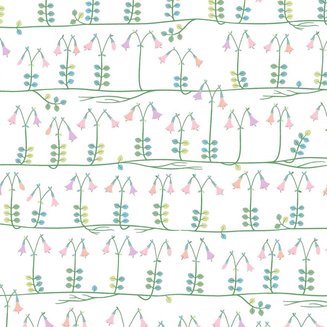 Очаровательные обои Linnea украшены нежными стилизованными цветами розового, зеленого и голубого цветов на свежем белом фоне.