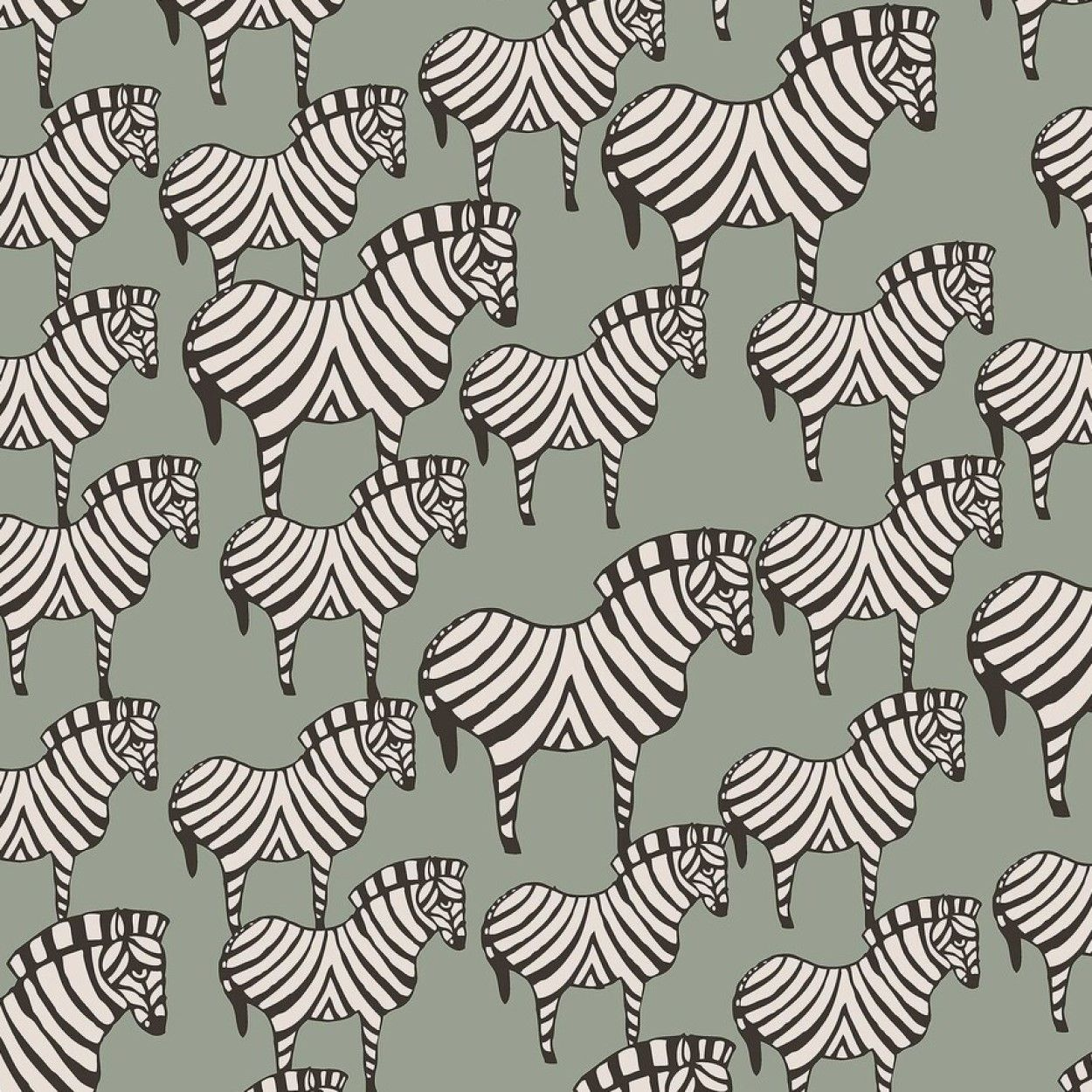 На наших обоях Zebra French Grey стадо черно-белых зебр грациозно движется по нежно-зеленому фону. Вдохновленная знаменитой и так любимой керамической работой Лизы Ларсон, первоначально созданной в 1957 году, эта версия наших обоев имеет более мягкую палитру, которая сохраняет живой ритм и очарование дизайна.