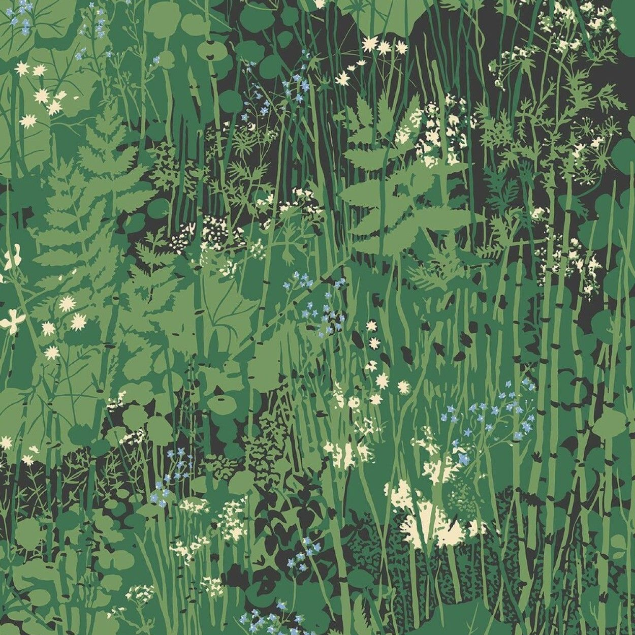 Этот культовый дизайн, созданный Арне Якобсеном в 1944 году для компании textile, включает в себя папоротники, незабудки и полевые цветы на темно-зеленом фоне.